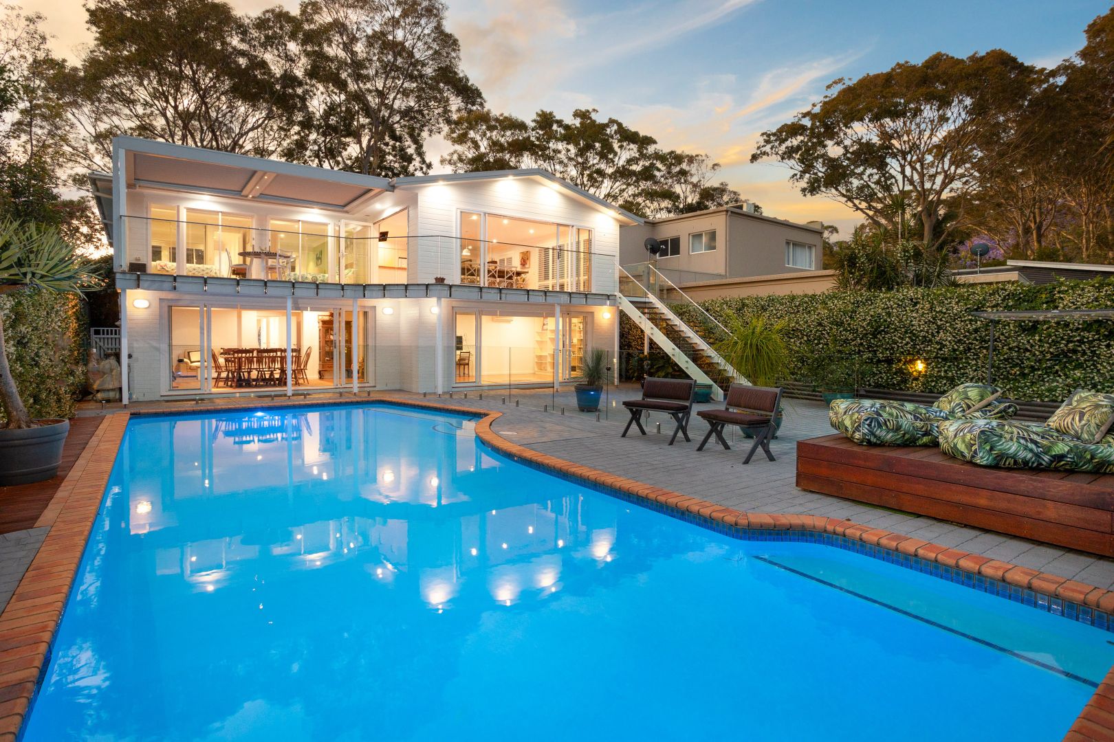 - Home has multiple outdoor areas including pool